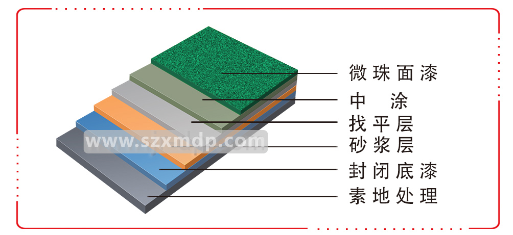 砂  漿  層:環(huán)氧樹脂中涂料調(diào)石英砂,用鏝刀或平刀抹刮;